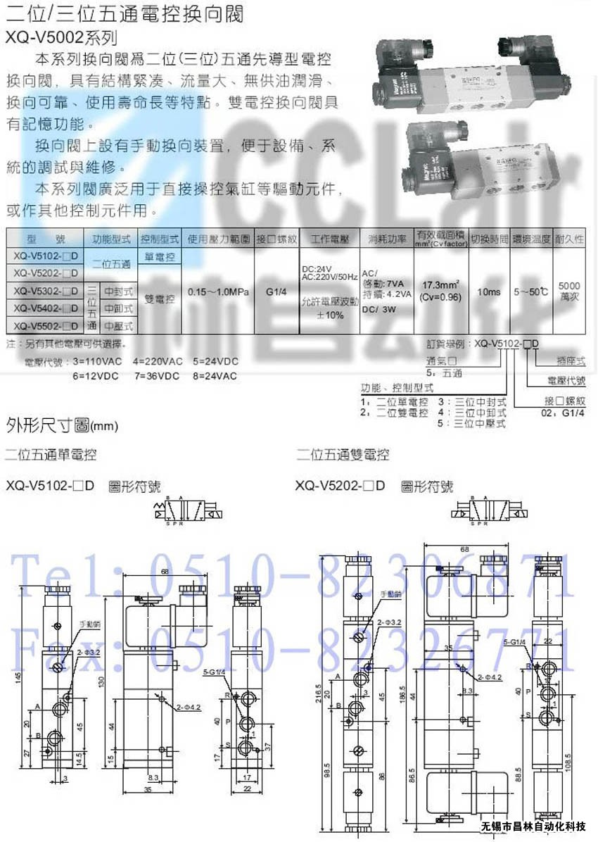 XQ-V5202-7D,XQ-V5202-8D,XQ-V5302-3D,XQ-V5302-4D,XQ-V5302-5D,二位/三位五通電控?fù)Q向閥