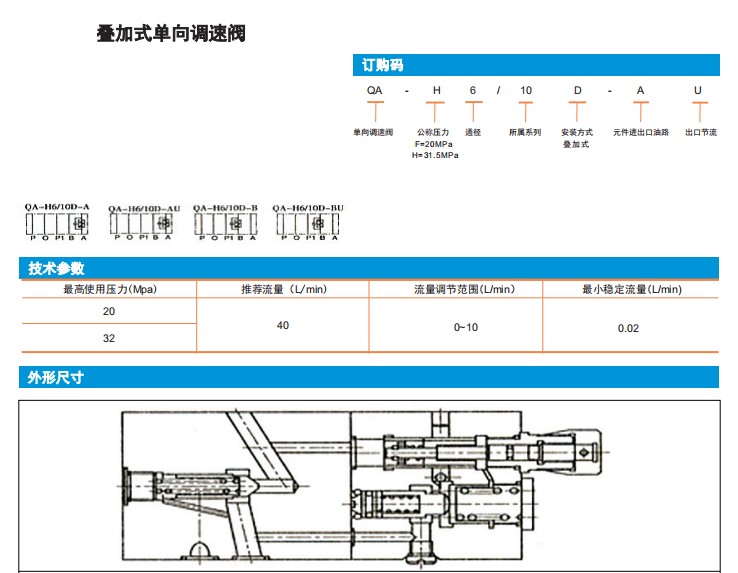 QA-H6/10D-A,QA-F6/10D-AU,QA-H6/10D-BU,QA-F6/10D-B,疊加式單向調(diào)速閥