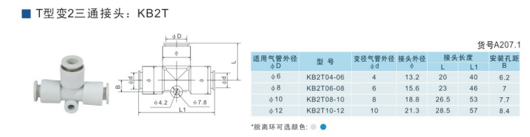 SMC型T型變2三通接頭KB2T04-06,KB2T06-08,KB2T08-10,KB2T10-12,KB2T12-16,