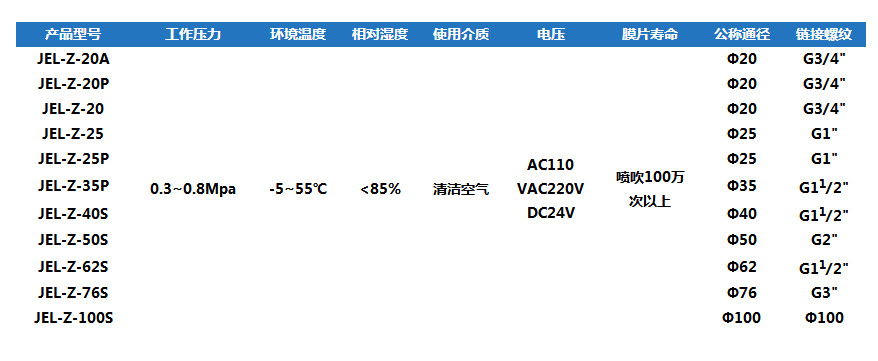 直角式脈沖閥JEL-Z-20,JEL-Z-25,JEL-Z-40S,JEL-Z-50S,JEL-Z-62S,JEL-Z-76S,