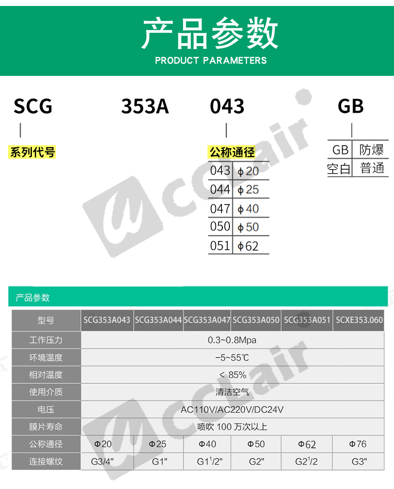 SCG353A043 膜片,線圈400325-,SCG353A044 膜片,線圈400425-,脈沖閥附件