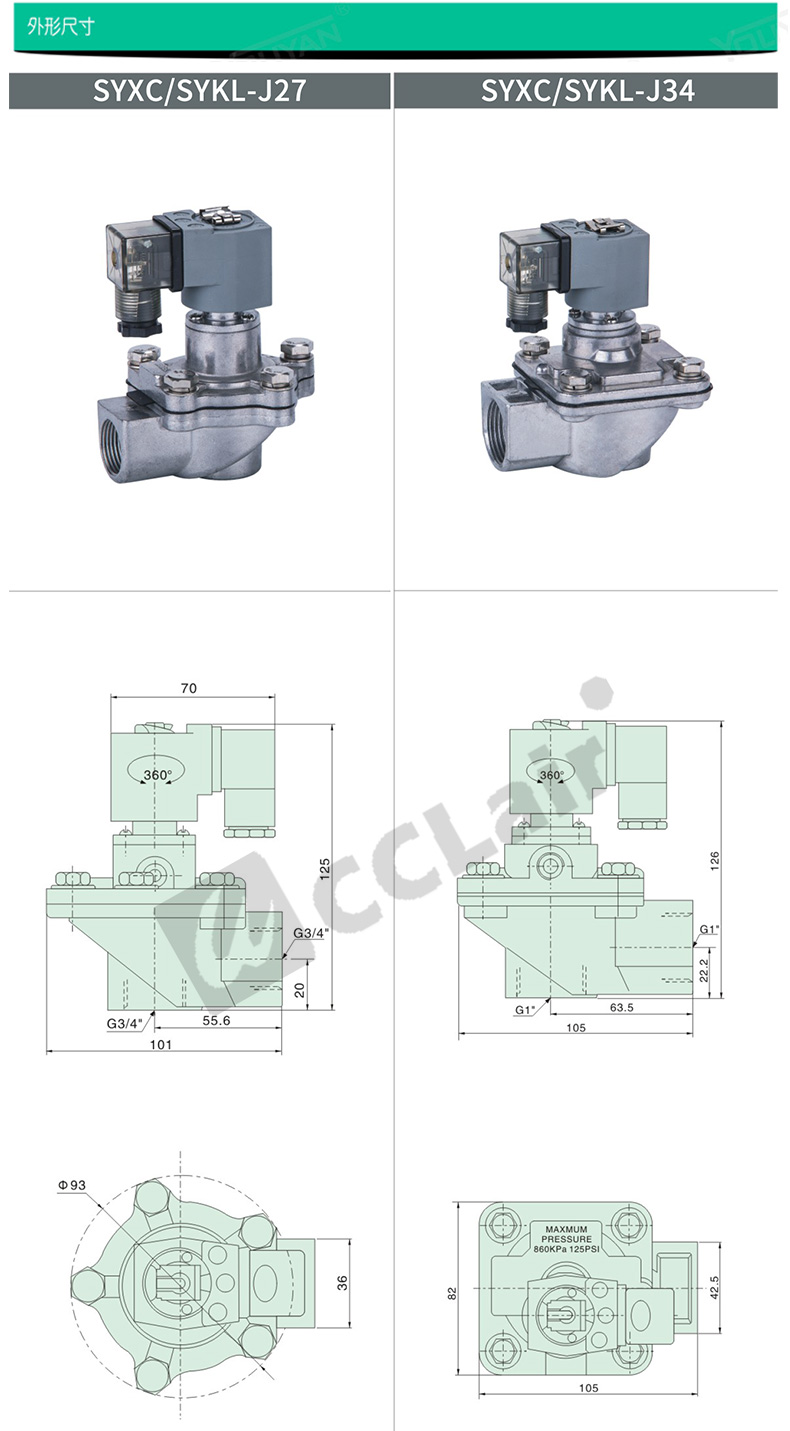SYXC-J27,SYKL-J27,SYXC-J34,SYKL-J34,直角式脈沖閥
