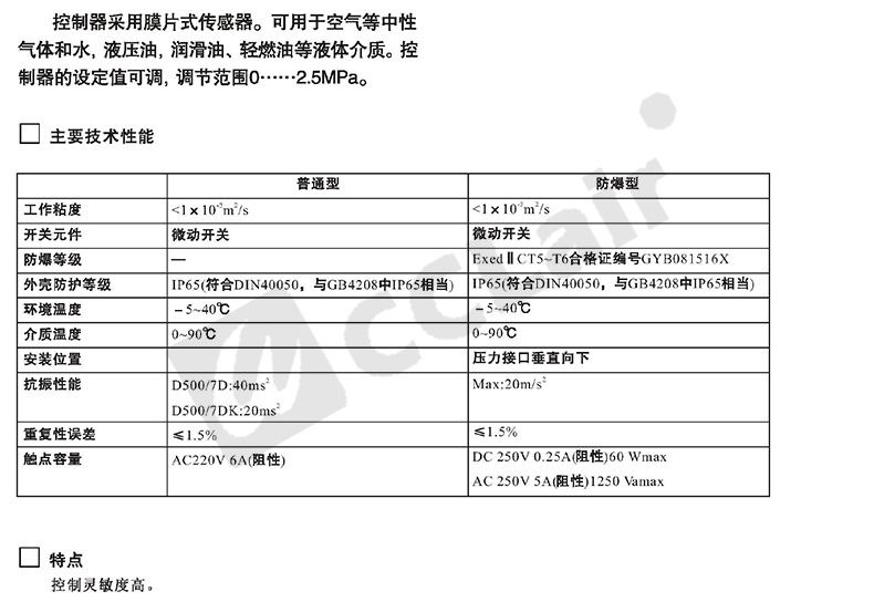 0802200,0804500,0802500,0804600,壓力控制器 普通 D500/7D切換差可調(diào)