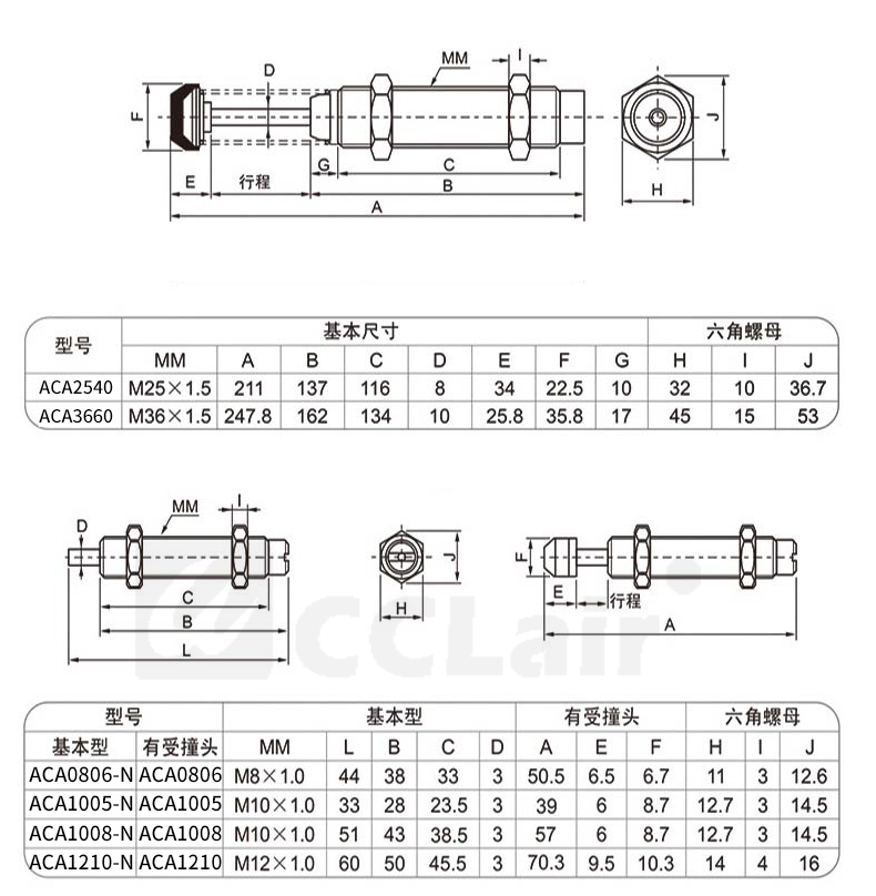 ACA0806,ACA1007,ACA1412,ACA1616,ACA1008,ACA1416,ACA1620,ACA1210,ACA不可調緩沖器