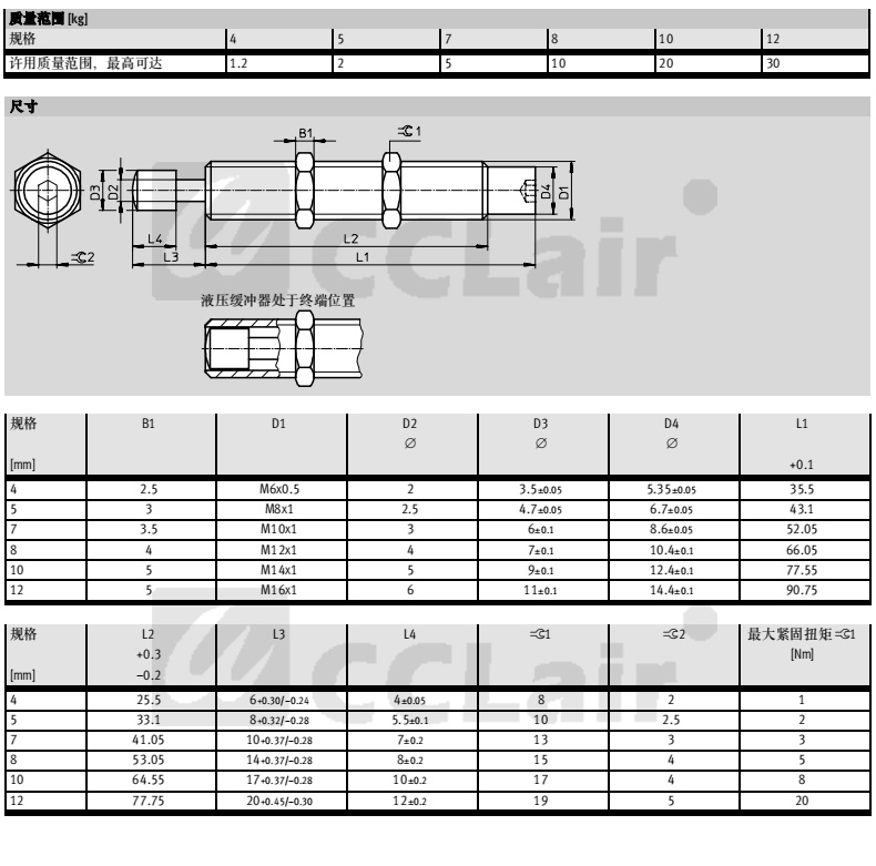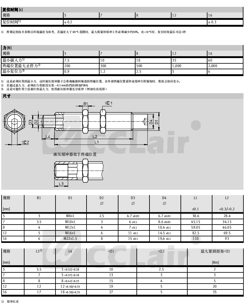 DYSW4-6Y1F,DYSW5-8Y1F,DYSW7-10Y1F,DYSW8-14Y1F,DYSW10-17Y1F,DYSW12-20Y1F, 油壓緩沖器DYSW