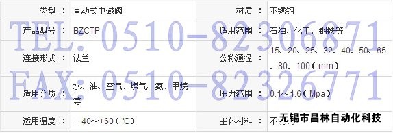 BZCTP二位二通防爆型全不銹電磁閥采用進口不銹鋼304材料制作適用于純水及微腐蝕性介質,直動式或先導式僅需0.01Kg微壓即可打開。采用聚四乙烯或氟橡膠密封可耐溫到200℃
