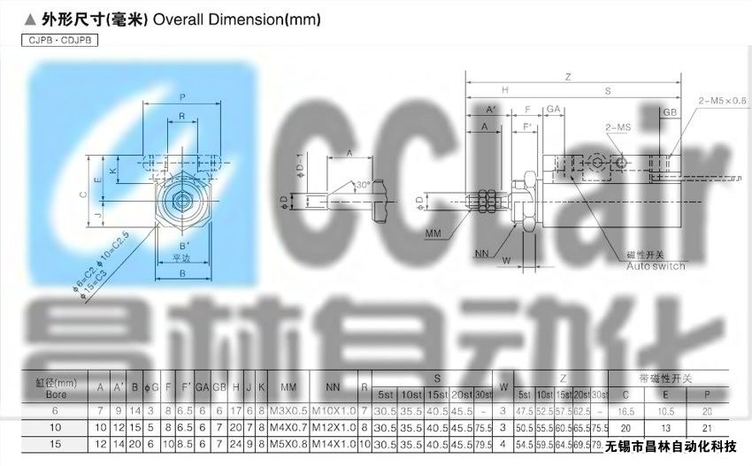 CJPB10-15,CJPB10-20,CJPB10-30,CJPB15-5,針型單動(dòng)氣缸