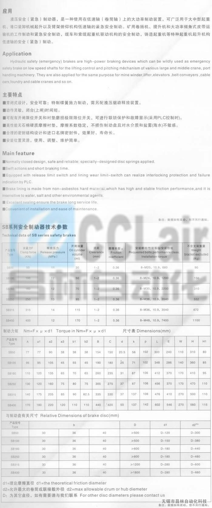 SB50,SB100,SB160,SB250,SB315,SB400,液壓安全制動(dòng)器