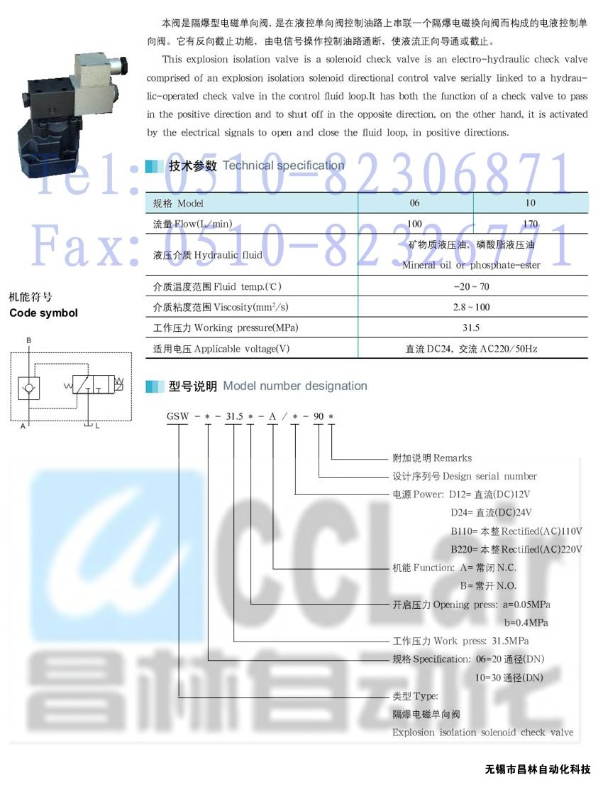 GSW-06-31.5b-A/B110-90,隔爆電磁單向閥,昌林隔爆電磁單向閥,隔爆電磁單向閥生產廠家,隔爆電磁單向閥價格,