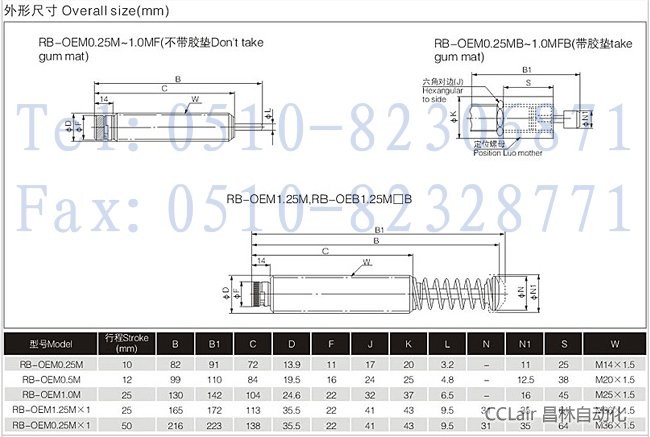 RB-OEM1.0MB,RB-OEM1.25M*1,RB-OEM1.25M*1B,RB-OEM0.25M*1,RB-OEM0.25M*1B,可調(diào)壓力式油壓吸震器