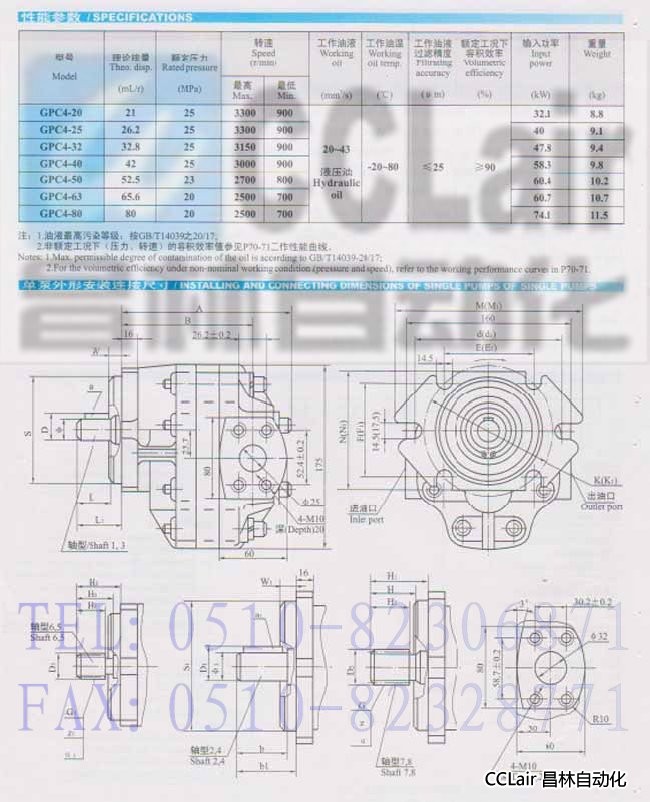 GPC4a-40, GPC4a-50, GPC4a-50, GPC4a-63, GPC4a-80, 齒輪泵