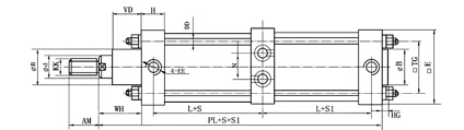 兩種均為QGBⅡ系列相同缸徑的氣缸串聯(lián)而成的雙活塞氣缸,兩活塞運(yùn)動(dòng)方向相同。