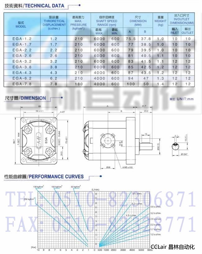 EGA-1.2,EGA-1.7,EGA-2.2,EGA-2.6,EGA-3.2,EGA-3.8,EGA-4.3,EGA-6.2,EGA-7.8,低噪音外嚙合齒輪泵