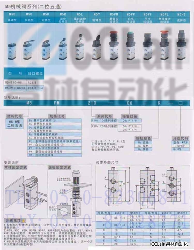 M5B110-06,M5C110-06,M5D110-06,M5Y110-06,M5R110-06,二位五通機械閥