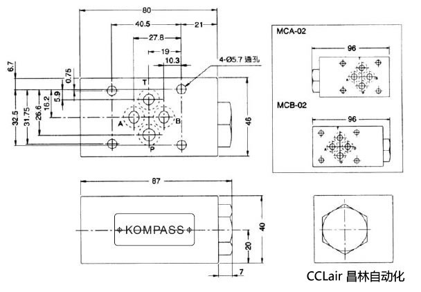 | 疊加式單向閥 | P: P油路 A: A油路 B: B油路 T: T油路 W: AB油路  |