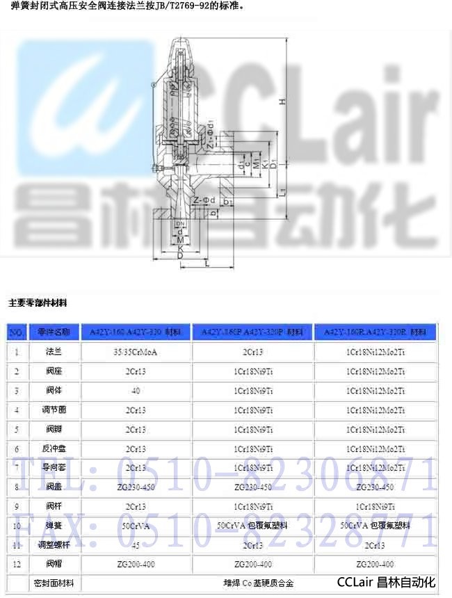 A41Y-160,A41Y-320,彈簧微啟封閉式安全閥