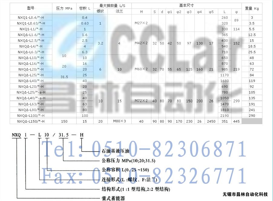 NXQ2-L16/10-H,NXQ2-L16/20-H,NXQ2-L16/31.5-H,蓄能器,昌林蓄能器,蓄能器價格,蓄能器生產廠家