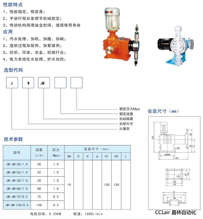 JW-JM-75/0.5,JW-JM-150/0.5,JW-JM-60/1.0,機械隔膜計量泵