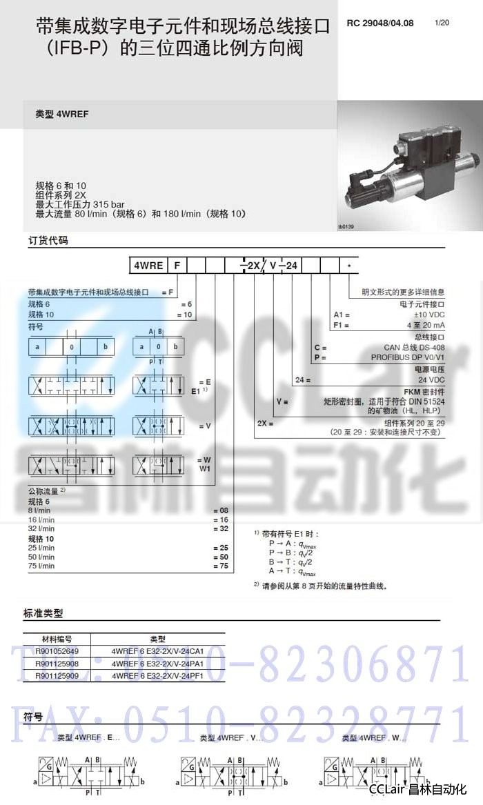 4WREF6E32-2X/V-24CA1,4WREF6E32-2X/V-24PA1,4WREF6E32-2X/V-24PF1,比例方向閥,力士樂REXROTH,德國力士樂