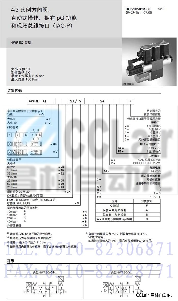 4WREQ6Q5-32-2X/V4A-24PF60,4WREQ10Q5-25-2X/V8F-24CA60,,比例方向閥,力士樂(lè)REXROTH,德國(guó)力士樂(lè)
