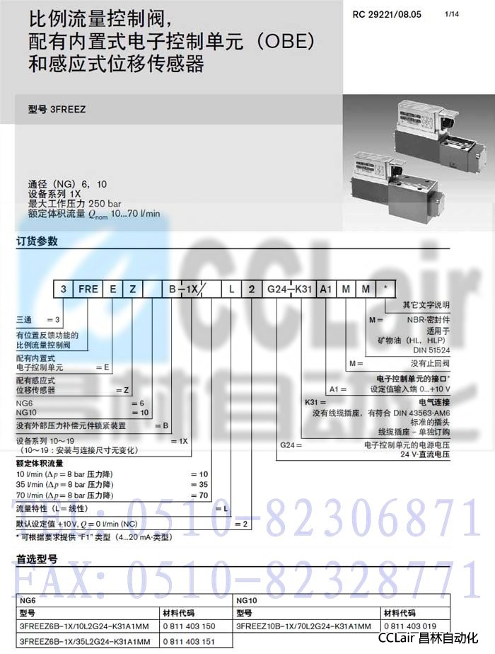 EEZ6B-1X/10L2G24-K31A1MM,比例流量控制閥,力士樂REXROTH,德國力士樂