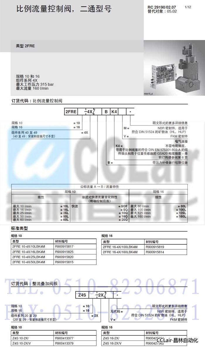 2FRE10-4X/10QBK4M,2FRE10-4X/16QBK4M,2FRE10-4X/25QBK4M, ,比例流量控制閥,力士樂REXROTH,德國力士樂 |