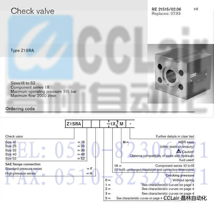 Z1SRA15F1-1X/M,Z1SRA15F2-1X/M,Z1SRA15H1-1X/M,單向閥,力士樂REXROTH,德國力士樂 |