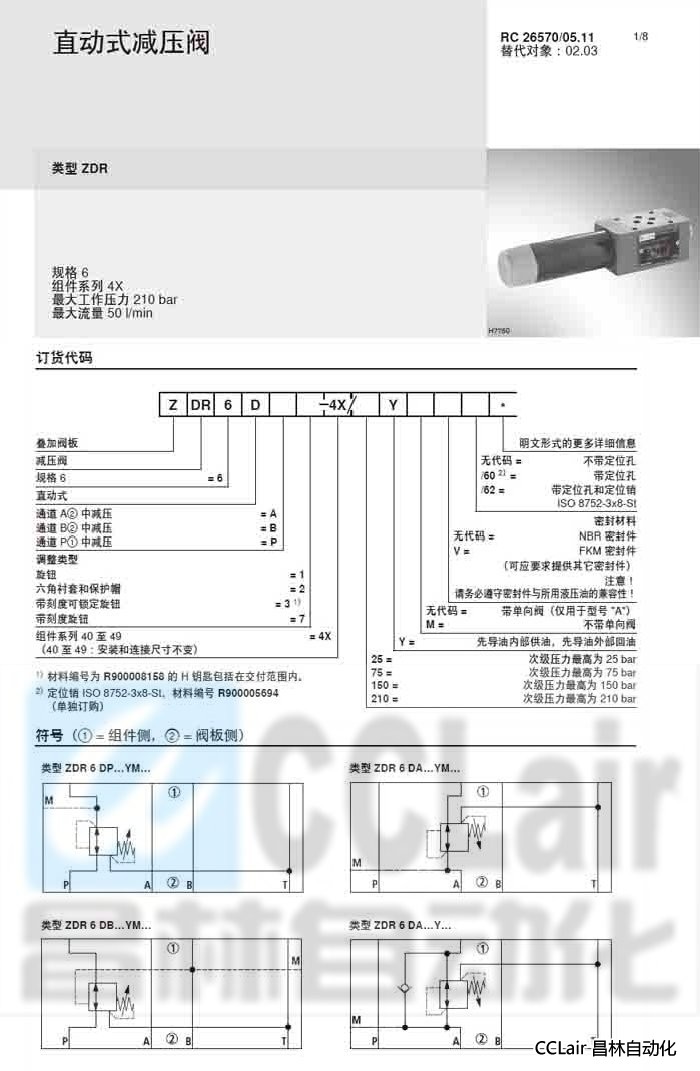 ZDR6DA1-4X/25YM,ZDR6DA1-4X/25YMV,ZDR6DA1-4X/25Y,直動(dòng)式減壓閥,力士樂REXROTH,德國(guó)力士樂