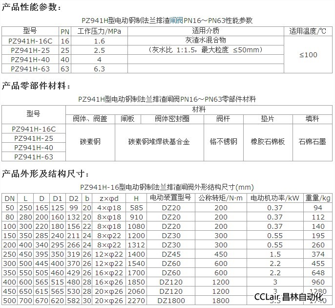 PZ941H-16C,PZ941H-25,PZ941H-40,PZ941H-63,電動鋼制法蘭排渣閘閥