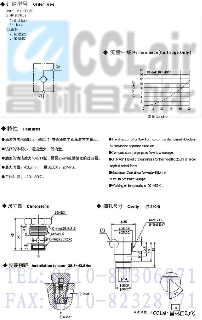 CV09-21-A-N,CV09-21-B-N,CV09-21-A-V,CV09-21-B-V,逆流單向閥