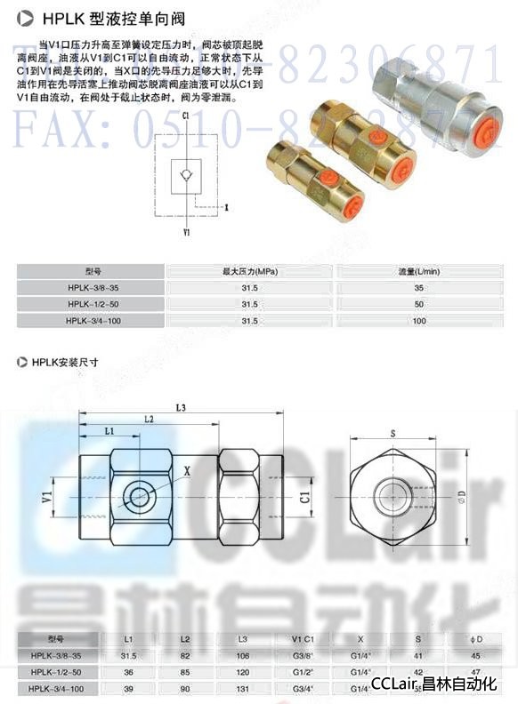 HPLK-3/8-38,HPLK-1/2-50,HPLK-3/4-100,液控單向閥
