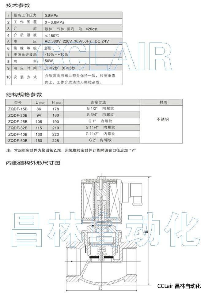 ZQDF-15B,ZQDF-20B,ZQDF-25B,ZQDF-32B,不銹鋼通用電磁閥ZQDF-40B,ZQDF-50B,無(wú)錫昌林,