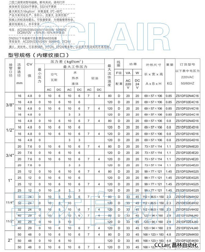 ZS1DF02N4G25,ZS1DF02E4G25,不銹鋼二位二通零壓差電磁閥(常閉型)