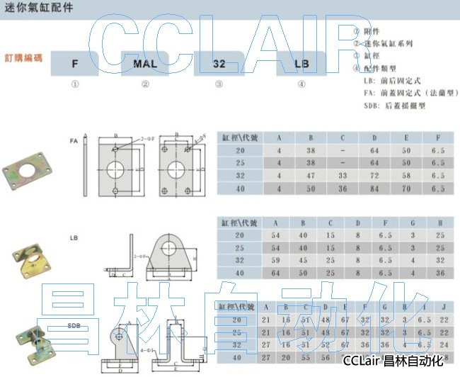 F-MAL20-LB,F-MAL25-LB,F-MAL32-LB,F-MAL40-LB,F-MAL20-FA,迷你氣缸配件