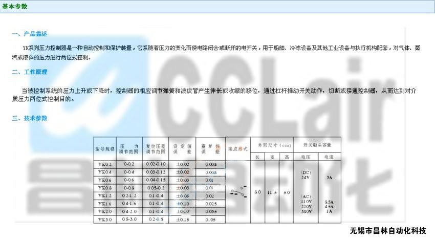 YK1.2,YK1.6,YK2.0,YK3.0壓力控制器,