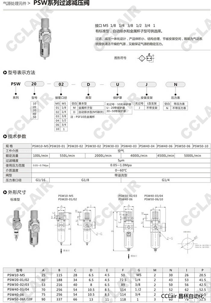 PSW40-MS,PSW40-01,PSW40-02,PSW40-03,PSW40-04,PSW40-06,PSW40-10,氣動過濾減壓閥