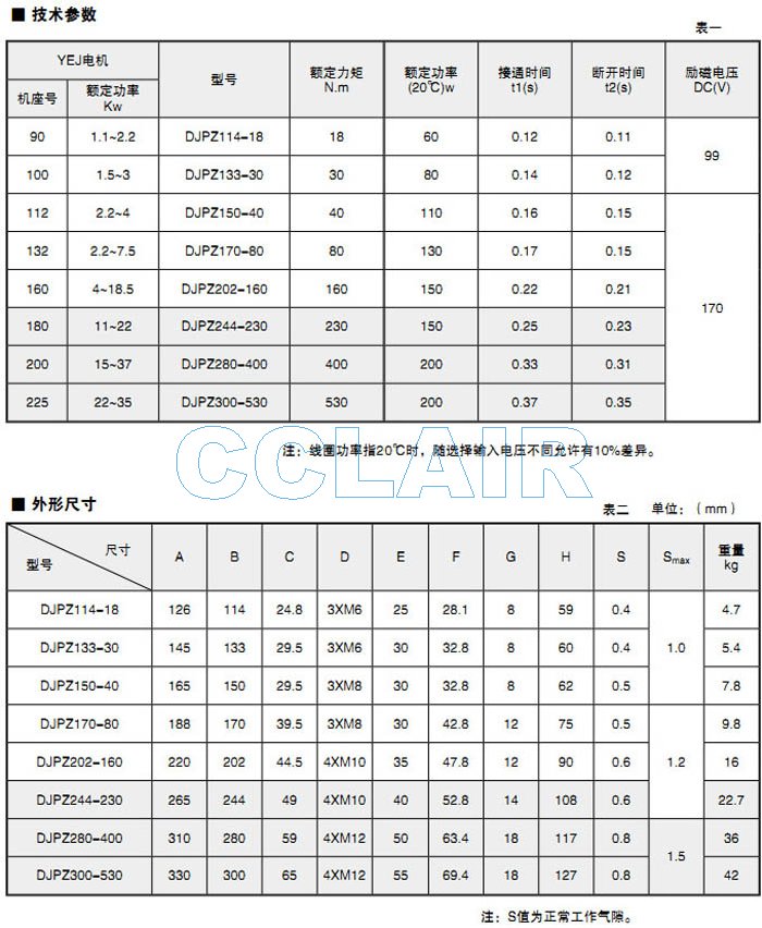 DJPZ114-18,DJPZ133-30,DJPZ150-40,DJPZ170-80,DJPZ202-160,DJPZ244-230,電機盤式制動器