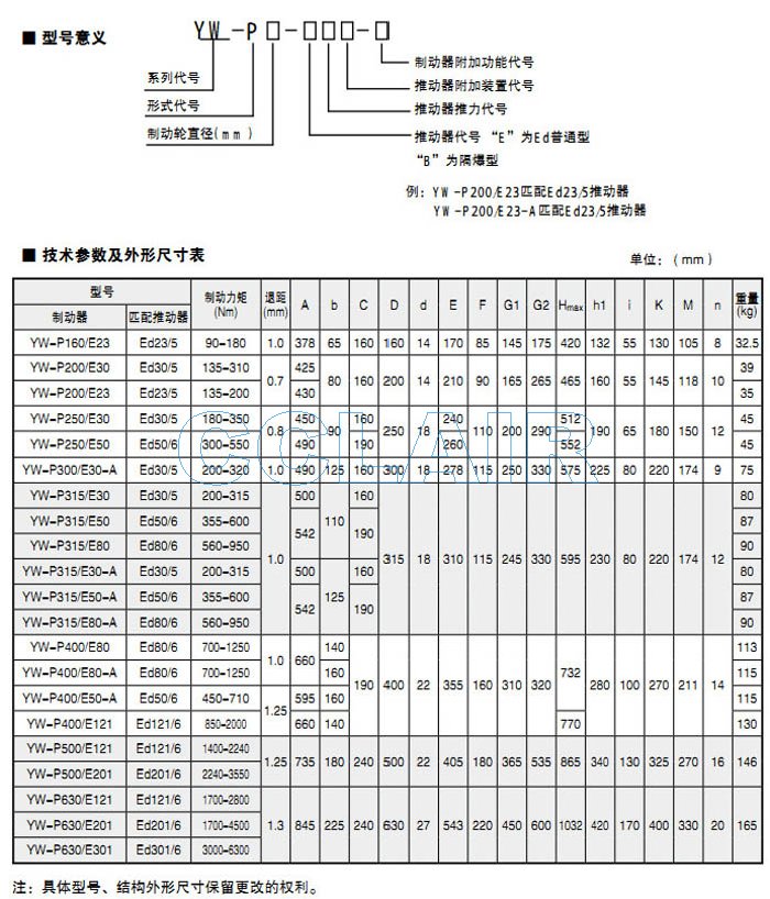 YW-P400/E80,YW-P400/E80-A,YW-P400/E50-A,YW-P400/E121,YW-P500/E121,電力液壓鼓式制動(dòng)器