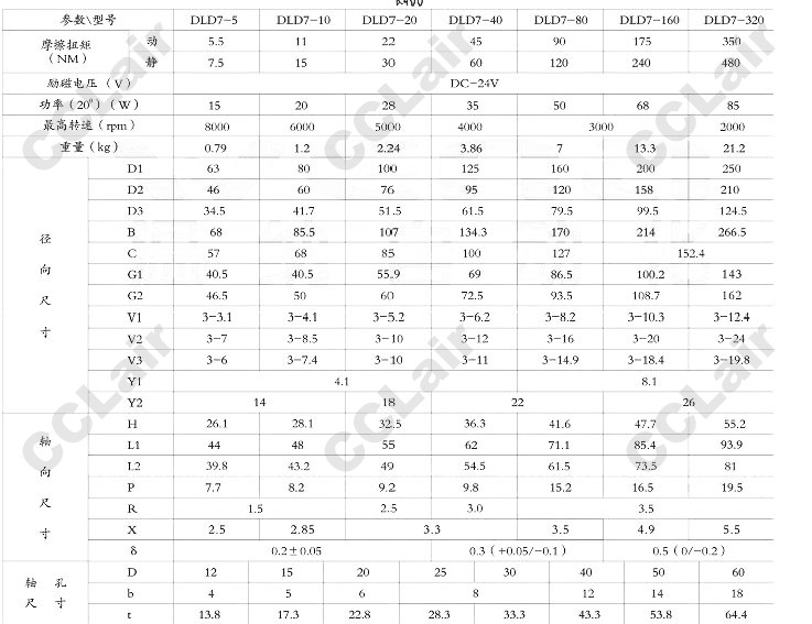 DLD7-5,DLD7-10,DLD7-20,DLD7-40,DLD7-80,DLD7-160,DLD7-320,電磁離合器