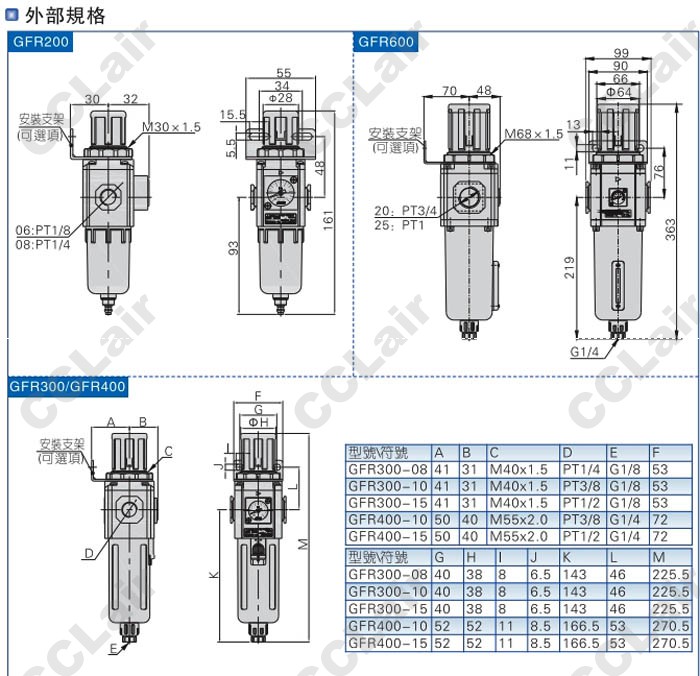 GFR300-08-A-L-NC3-W,臺(tái)灣亞德客(AirTAC),GFR300-10-A-L-NC3-W,GFR300-15-A-L-NC3-W,