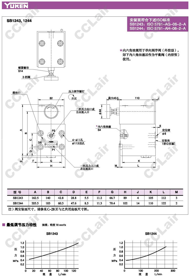 SB1243-1-10,SB1243-2-10,SB1244-1-10,SB1244-2-10,座閥型壓力控制閥,YUCIYUKEN榆次油研