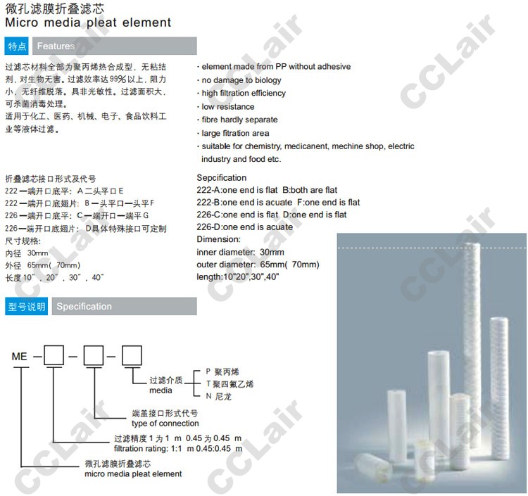 ME-0.1,ME-0.2,ME-0.45,ME-1,ME-2,ME-3,ME-5,ME-10,ME-30,ME-60,微孔濾膜折疊濾芯