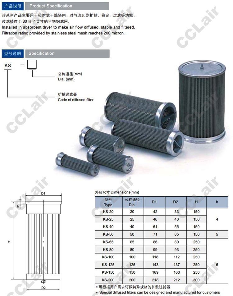 KS-20,KS-25,KS-40,KS-50,KS-65,KS-80,KS-100,KS-125,KS-150,KS-200,擴(kuò)散過濾器
