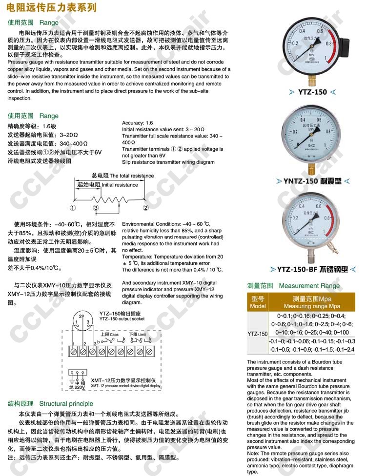 YTZ-150,YNTZ-150,YTZ-150-BF,電阻遠傳壓力表,無錫昌林