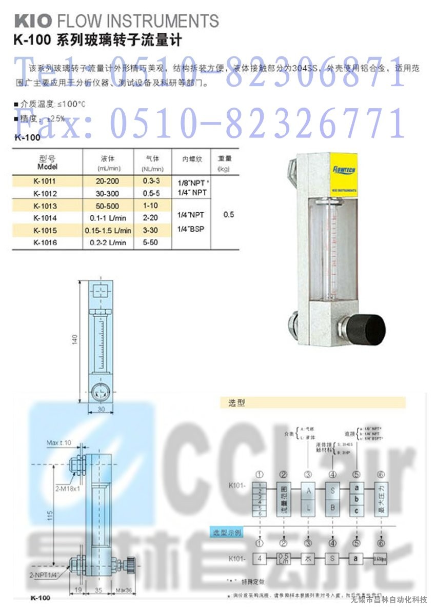 K-1014,K-1015,K-1016玻璃轉(zhuǎn)子流量計