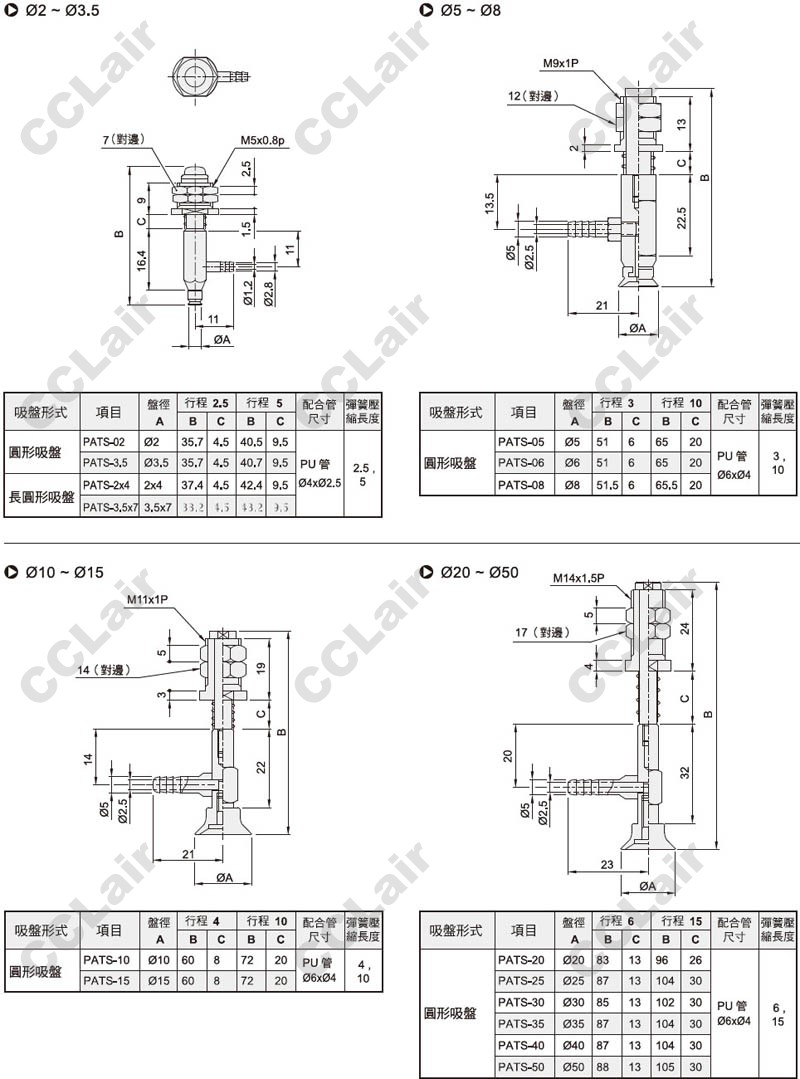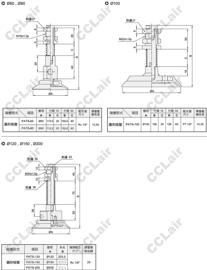 PATS-20,PATS-25,PATS-30,PATS-35,PATS-40,PATS-50,PATS-60,PATS-80,PATS-100,PATS-120,PATS-150,PATS-200,真空吸盤