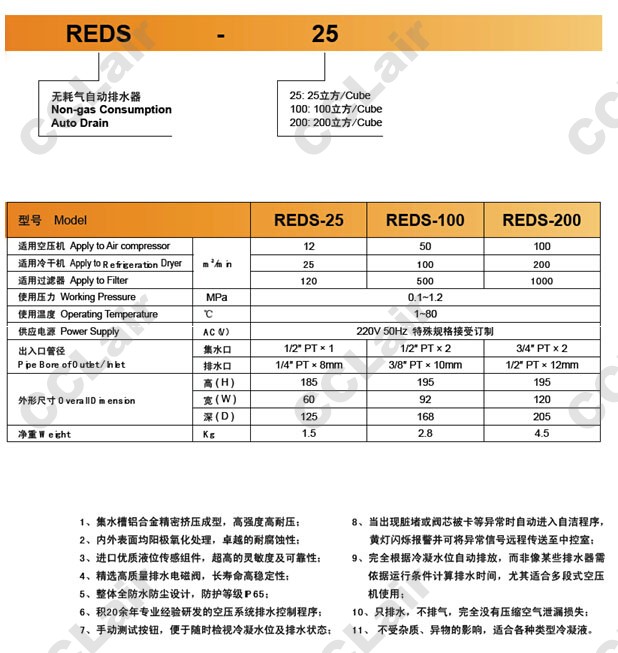 REDS-25,REDS-100,REDS-200,無(wú)耗氣自動(dòng)排水器,CCLair
