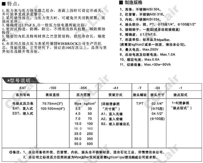 EAT-75-35K,EAT-75-70K,EAT-100-70K,EAT-100-100K,EDT-75-35K,EDT-100-50K,EDT-75-100K,電接點(diǎn)壓力表