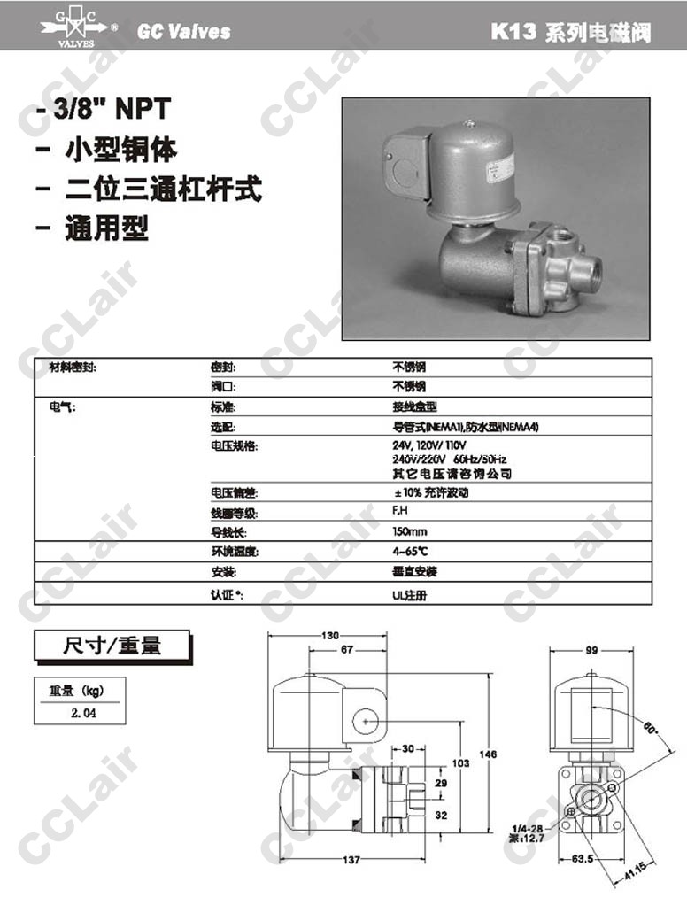K13CF1232,K13CF1432,GC Valves二位三通杠桿式電磁閥