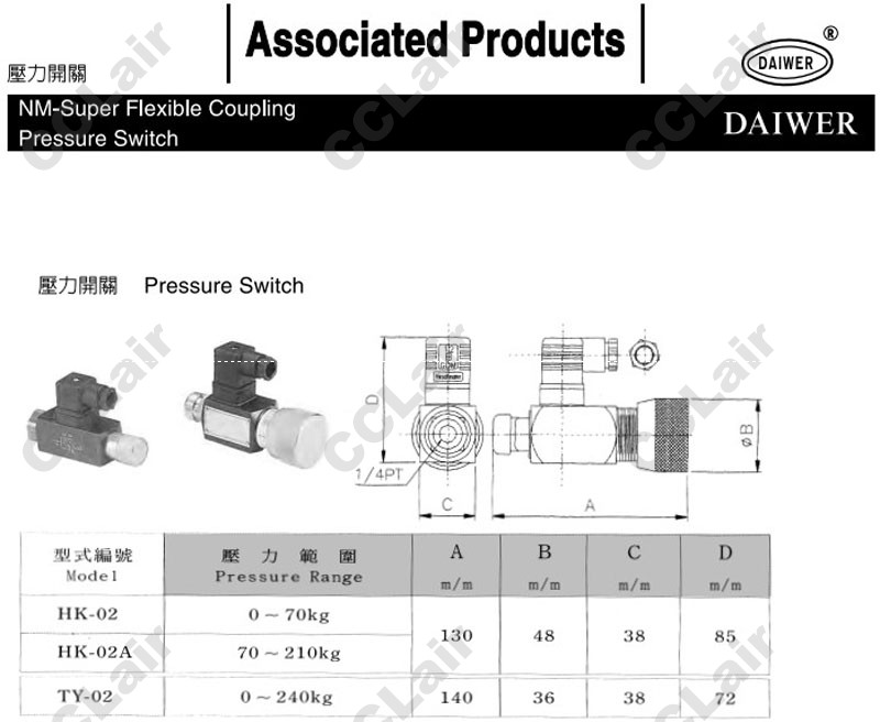 HK-02,HK-02A,TY-02,DAIWER壓力開關(guān)